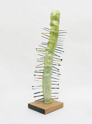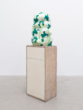 The painterly ceramic forms in Ziemann’s sculptures drip, slump, fold, and lean as they physically interact with their components, their connections alluding to a longing for permanence and structure. Using materials suggestive of the artist’s studio and construction, the work is rooted in processes of building, reflecting the labor involved in developing relationships with friends, lovers, and the world around him. Projecting a sense of prideful awkwardness, his sculptures act as both static, fetishized objects and stand-ins for emotive bodies, exuding individual and collective presences.